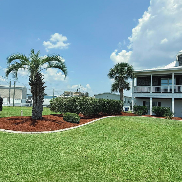 We refreshed and trimmed the shrubs, reshaped the palm, and installed fresh brown mulch to define the beds and retain moisture. The result is a cleaner, cohesive landscape with improved curb appeal and easier maintenance.