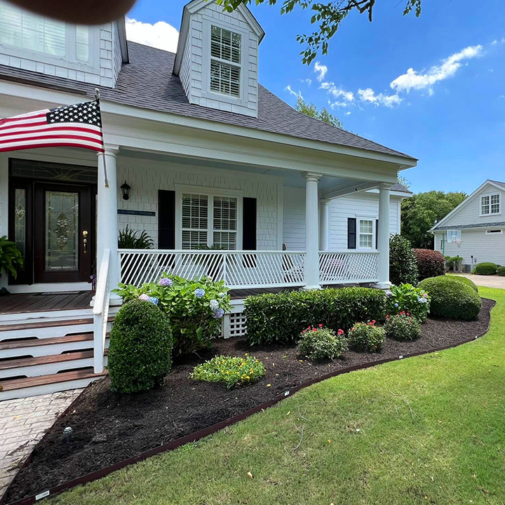We shaped and trimmed overgrown shrubs to create clean lines and balanced proportions around the house. This simple update improves visibility, plant health, and overall curb appeal.