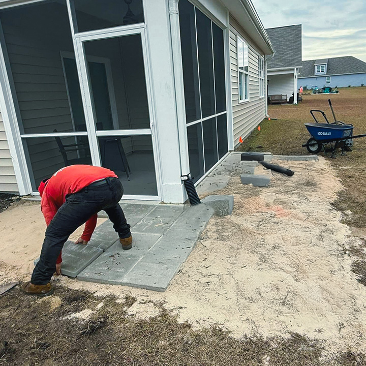 We prepared a solid base and installed interlocking pavers for a level, durable patio/walkway. The finished surface looks refined and provides a long-lasting, low-maintenance hardscape.
